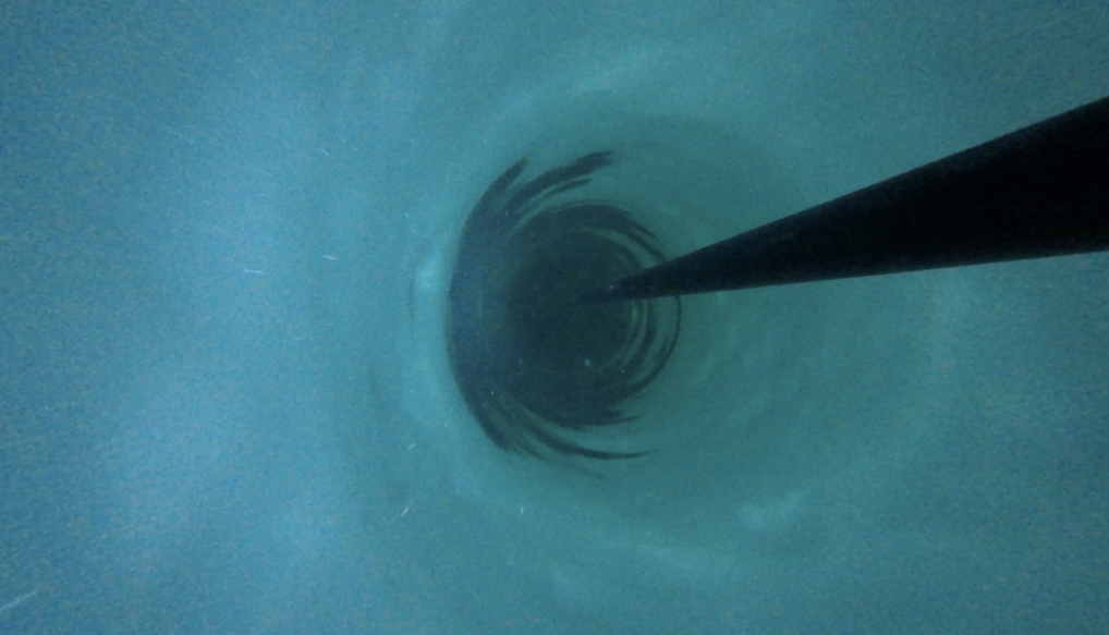 我国首次南极冰层热水钻探试验钻孔画面。(中国第42次南极考察队供图)